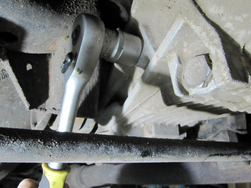 - Готовим машину к работе – поднимаем ее на подъемнике и фиксируем, очищаем редуктор от загрязнений, чистим металлической щеткой пробки от грязи и коррозии;
